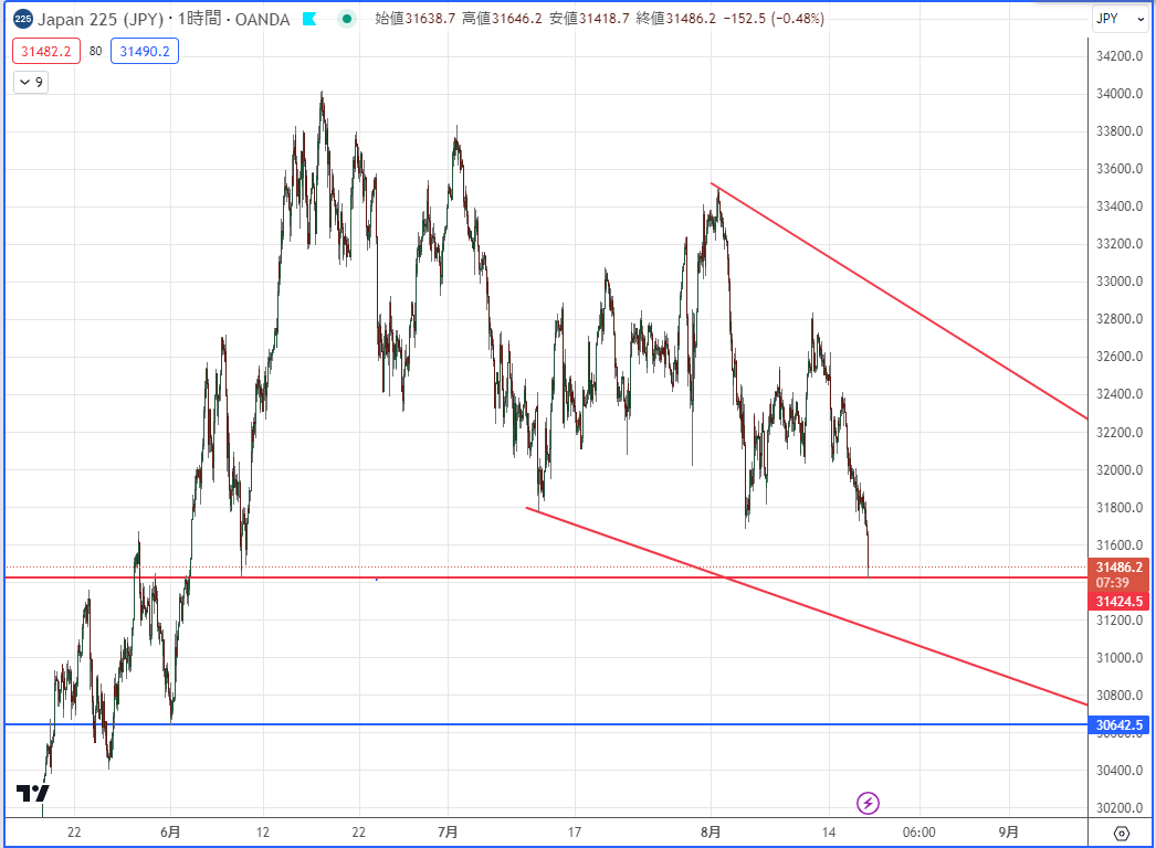 31390円からの31490円までの反発は以下の赤横ラインに反応したと見ています。