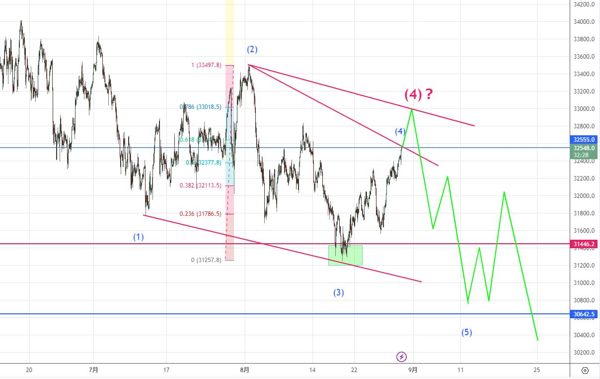 ちょうどそれが33000円付近になりますので、ここから33000円前後へ向けて