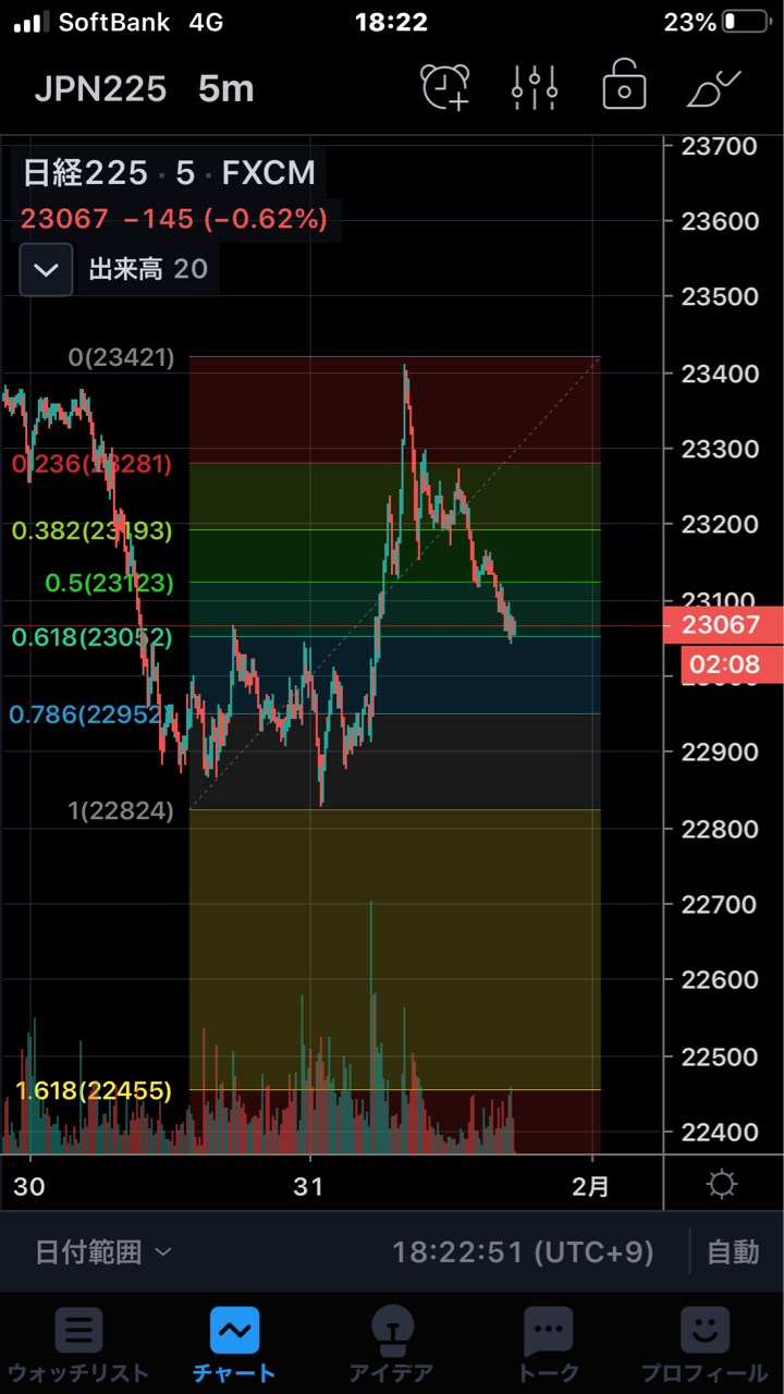 2020年01月31日 エクスパンテッドフラット? 0.618まで押して来ました。底値からの上昇が5波動のインパルスなら高値からの3波動の押しは買い。となりますが、底値からの5波動はレアなエクスパンテッドフラットのC波の可能性があるので、能天気には買えない状況と感じています。素直な動きが待ち遠しいですね。 「シナリオ」カテゴリの最新記事 「カウント」カテゴリの最新記事 < 前の記事次の記事 > コメント コメントフォーム 名前 コメント 記事の評価 リセット リセット 顔 星 情報を記憶 コメントを投稿する