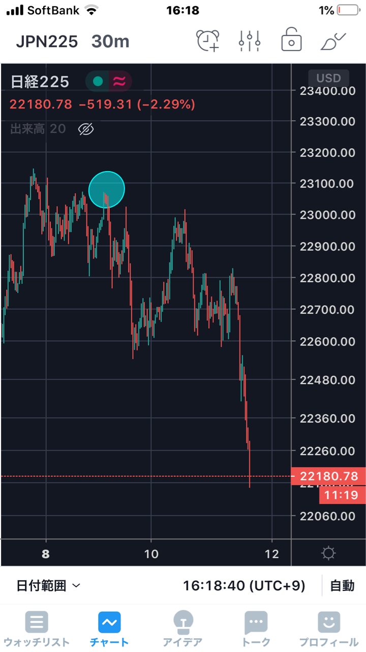 このように会社によってチャート形状が違ってしまう事例は割と頻繁に出現します。それは今回のコロナショックの安値という極めて重要な安値でも見られますので、そういう場合は日経平均株価や日経平均先物の価格を参考にするなどして考えて行くのが妥当ではないかと思います。
